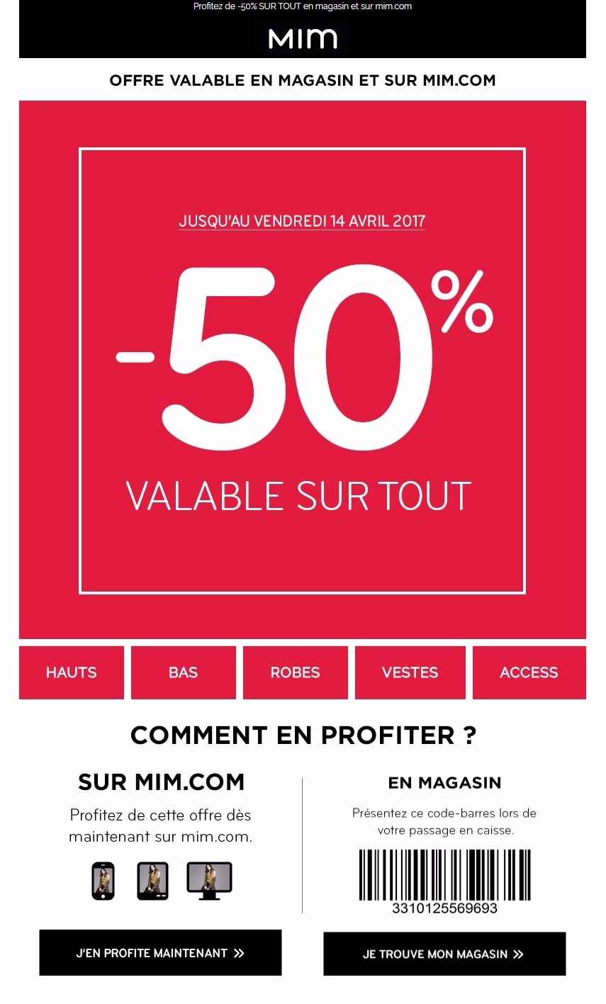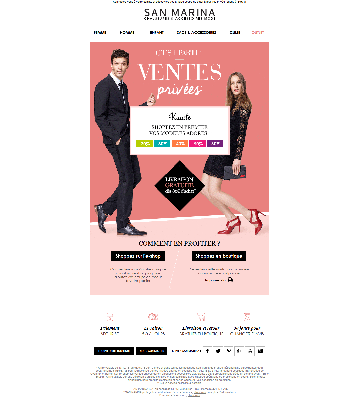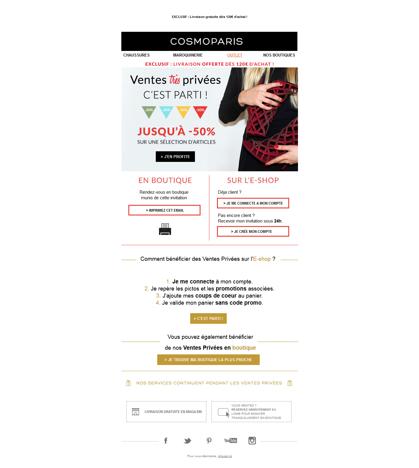 Ventes Privées jusqu’à -50%Sur l’eshop et en magasin en imprimant l’invitation ci-dessous