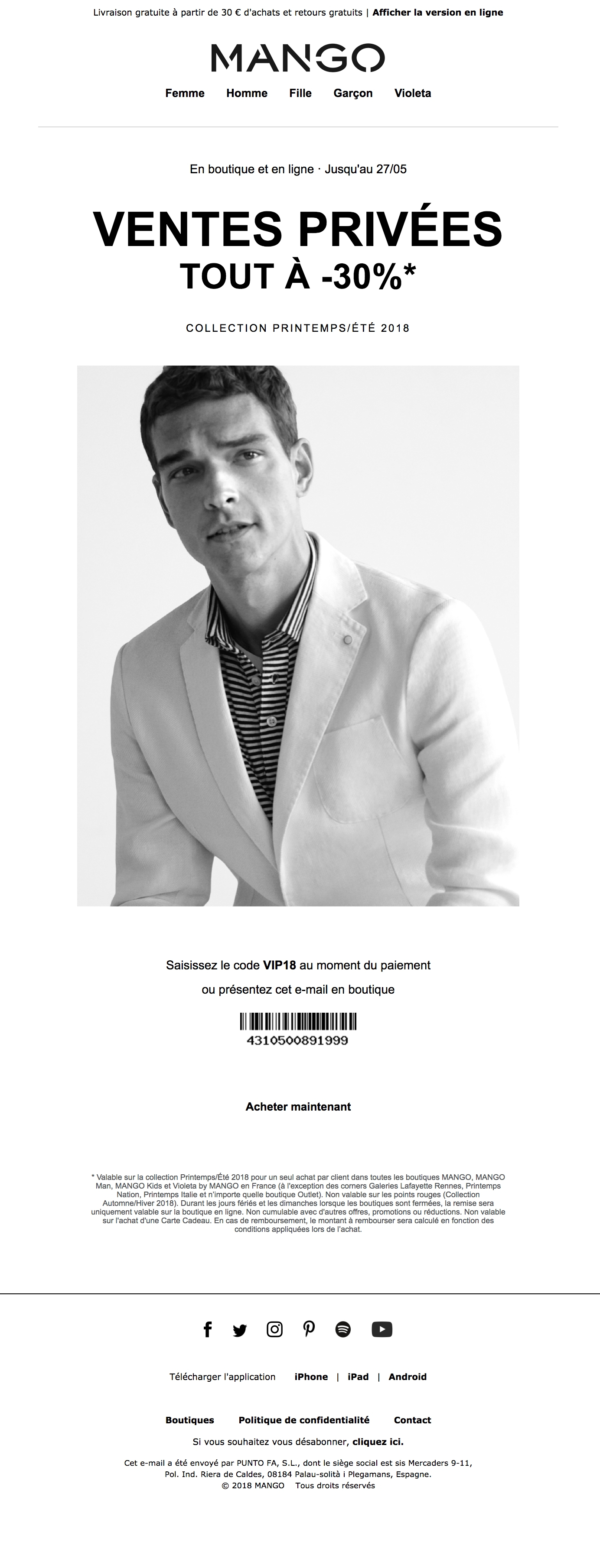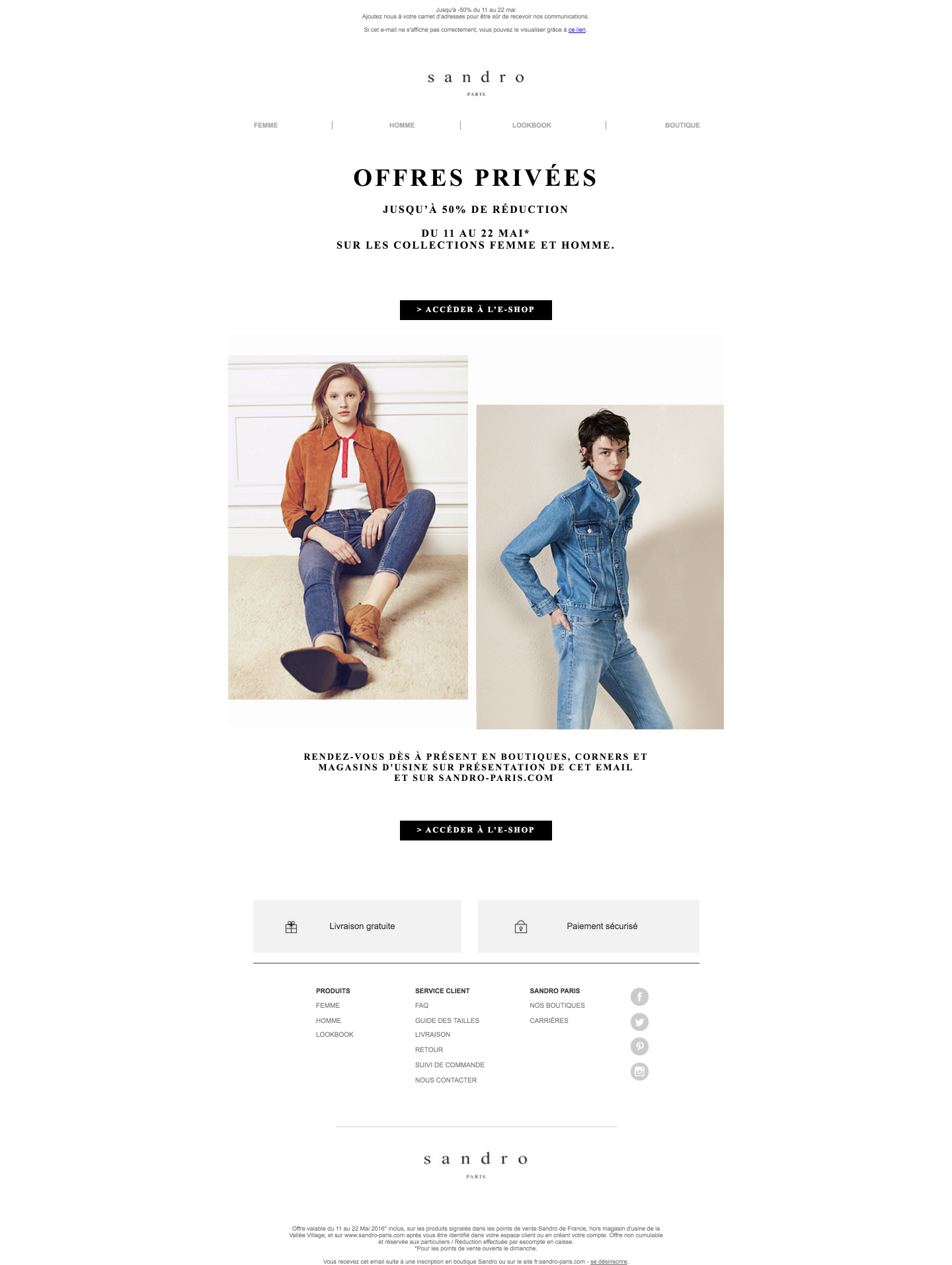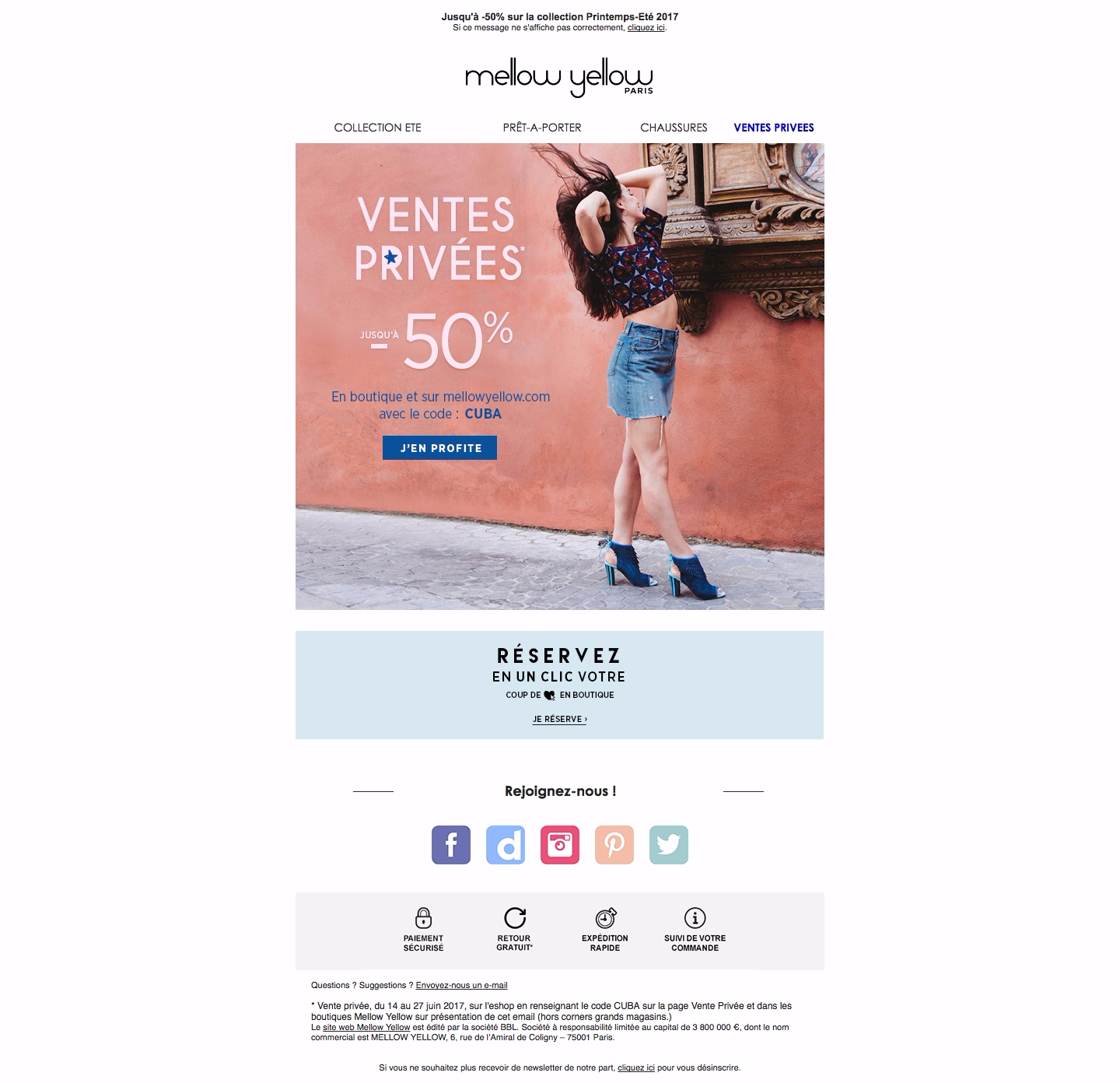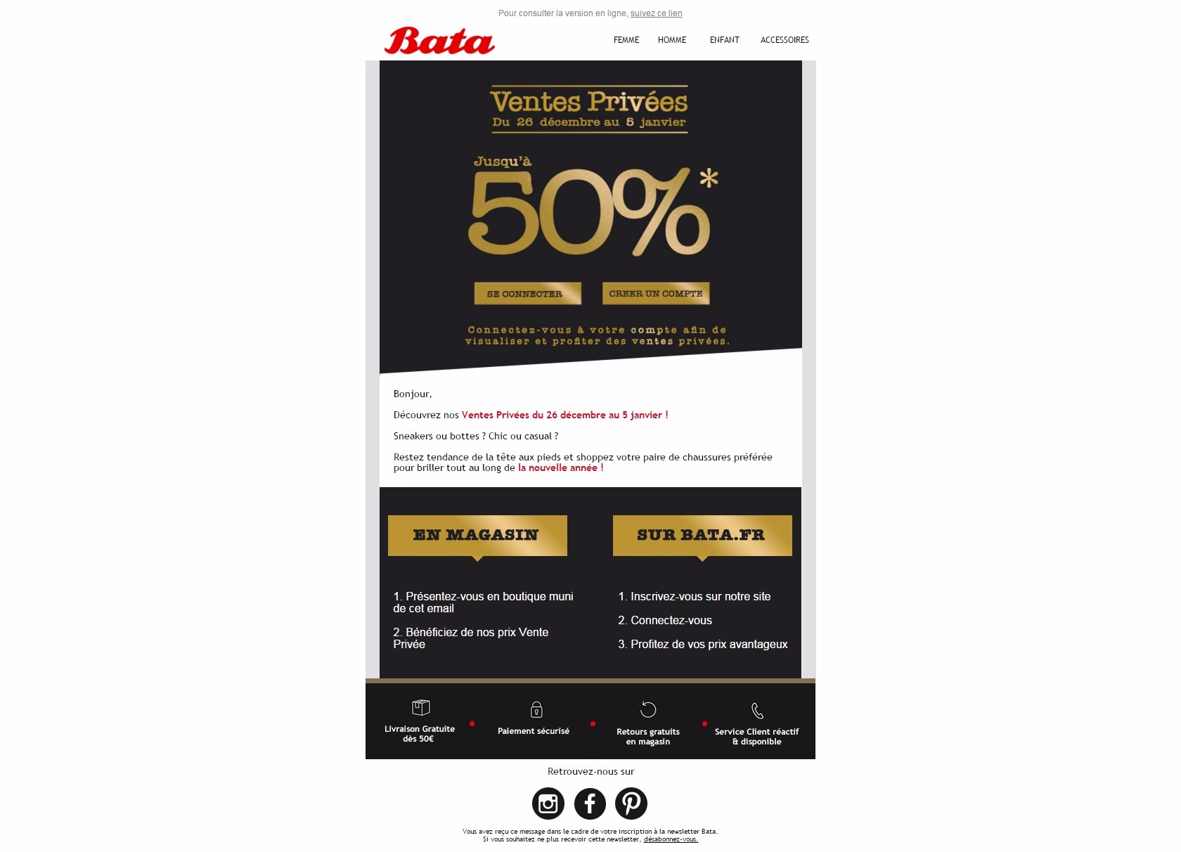 Ventes Privées jusqu’à -50%Sur l’eshop et en magasin en imprimant l’invitation ci-dessous