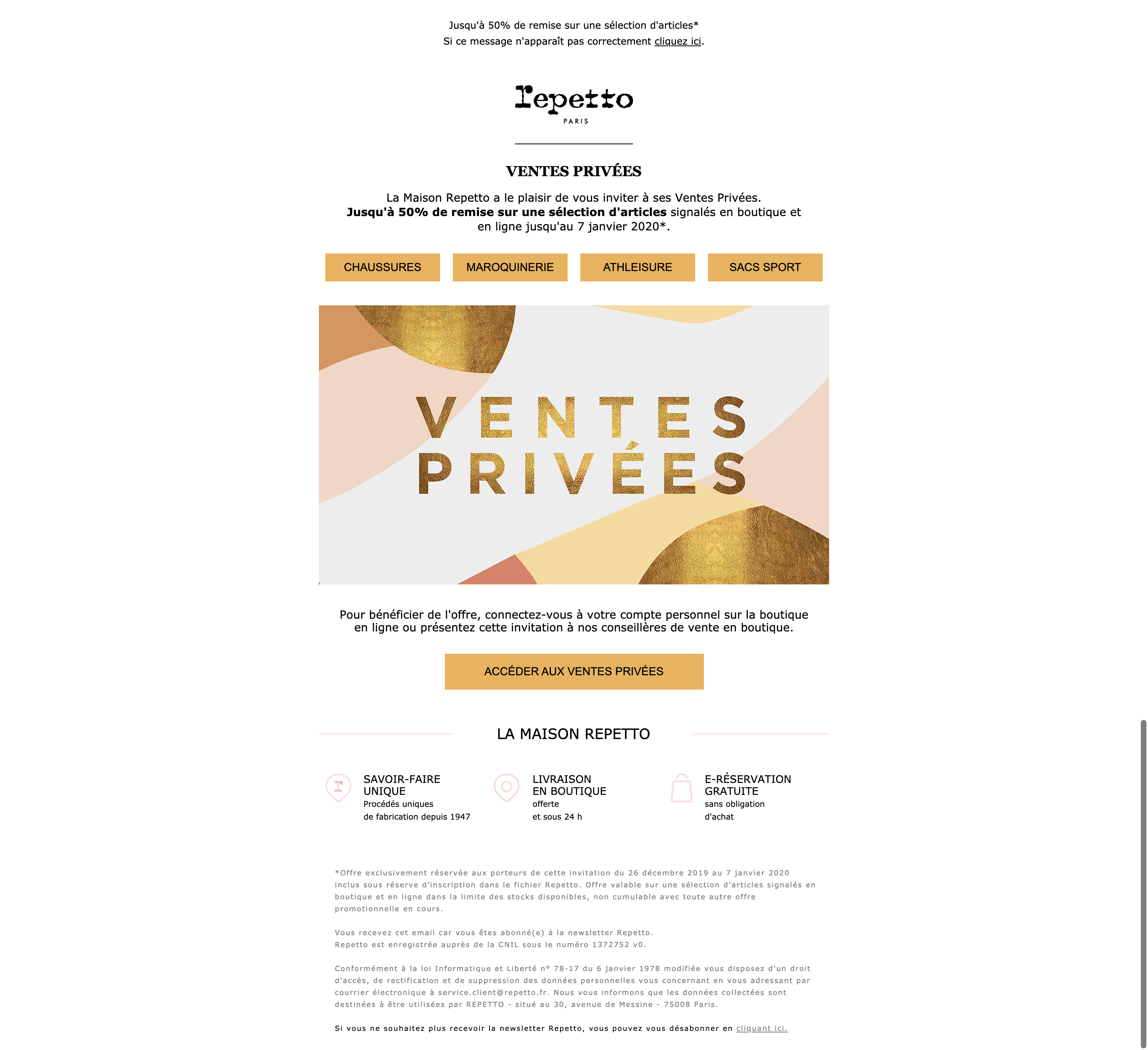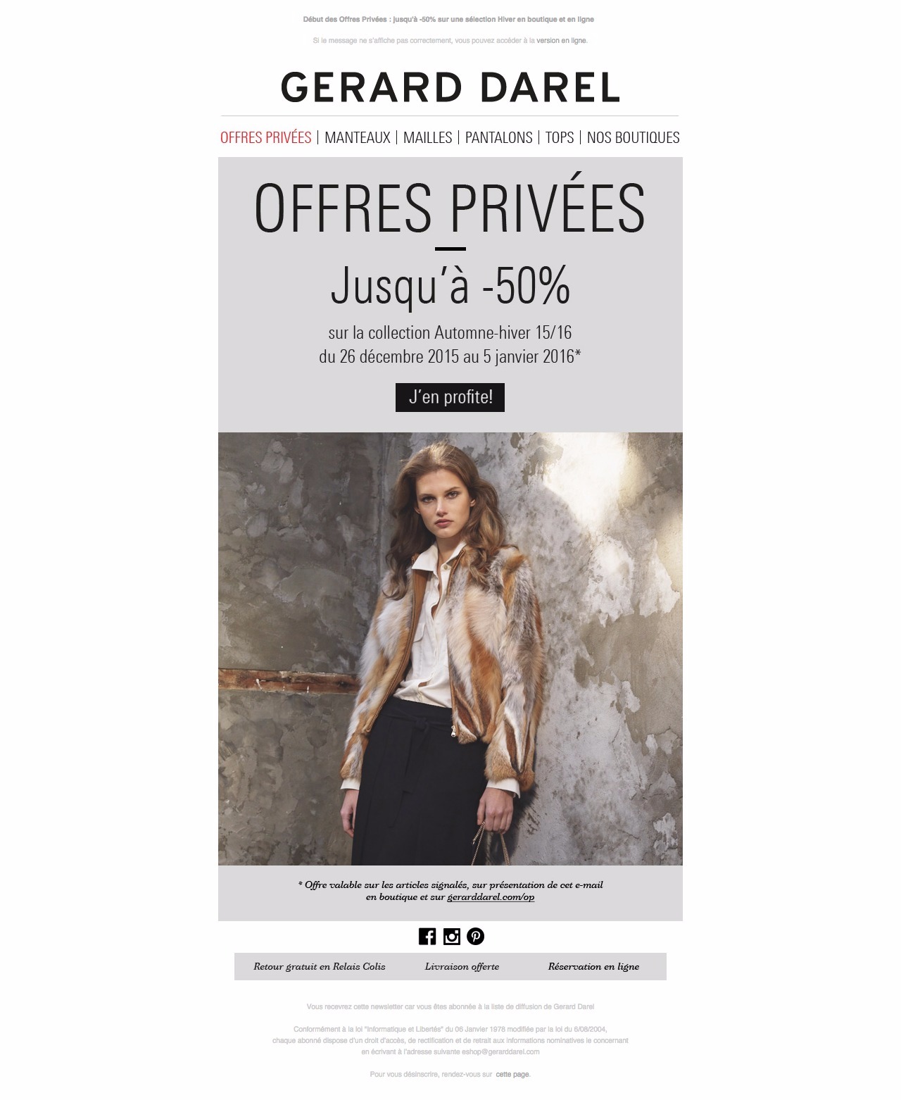 - Ventes privées Jusqu’à -50% sur une sélection d’articles jusqu’au 05/01/16
